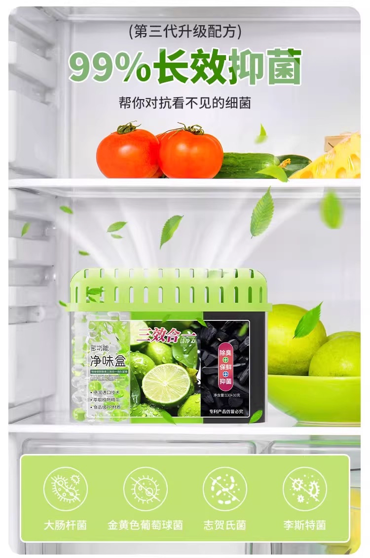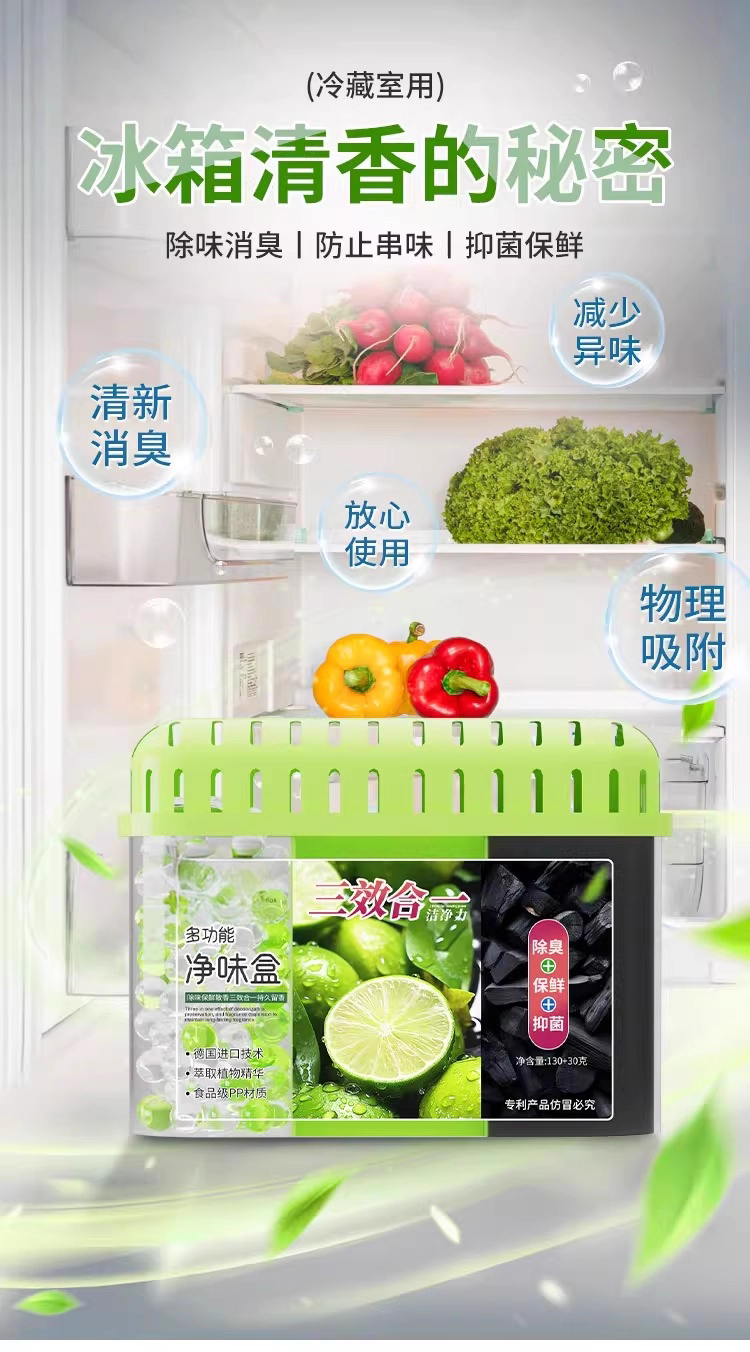 冰箱除味剂家用清洁去除异味抑菌活性炭除味盒除臭去味净化神器