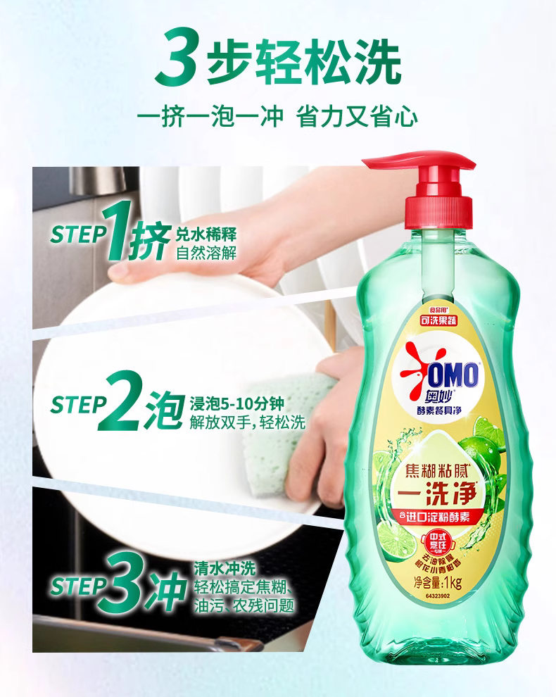 奥妙酵素果蔬食品用净洗洁精洗涤餐具蔬果去农残小青柑多组套可选