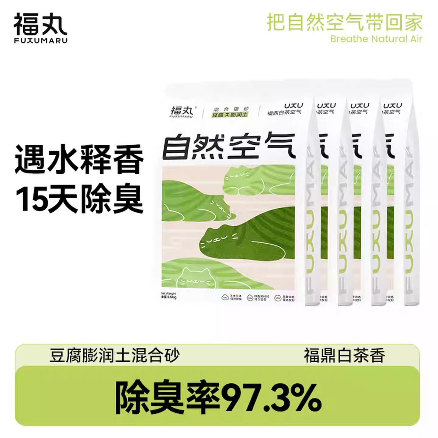 福丸自然空气豆腐猫砂膨润土混合砂除臭防臭砂低尘不粘底福鼎白茶