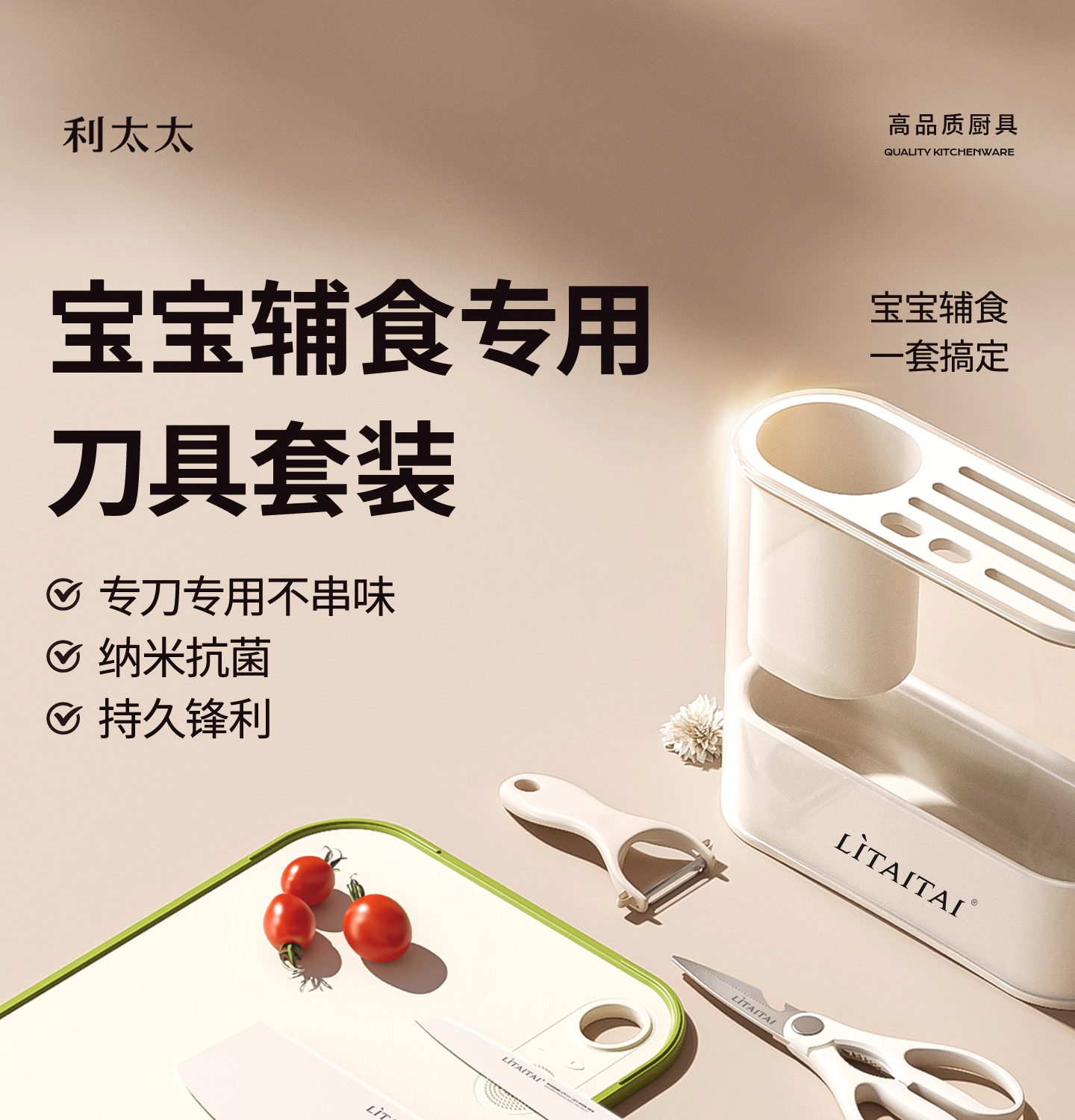 利太太宝宝辅食刀具套装厨房厨具婴儿专用菜板刀全套组合案板剪刀
